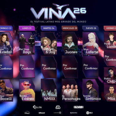 El Festival de Viña del Mar 2026 dio un paso clave hacia su próxima edición al presentar oficialmente el calendario de artistas que se presentarán entre el 22 y el 27 de febrero, completando así la histórica revelación del 100% de su parrilla musical. Programación oficial por día Domingo 22 de febrero:Apertura con Gloria Estefan y cierre de Matteo Bocelli. Lunes 23 de febrero:Pet Shop Boys encenderá la noche con […]
